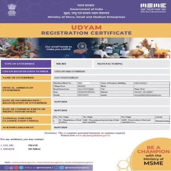 Udyam Registration Certificate Sample